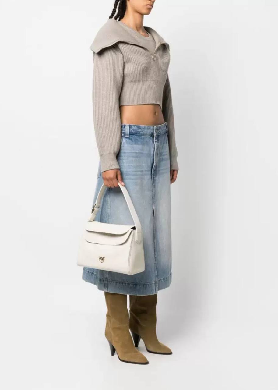 BIG LEAF BAG HOBO IN TUMBLED LEATHER - white