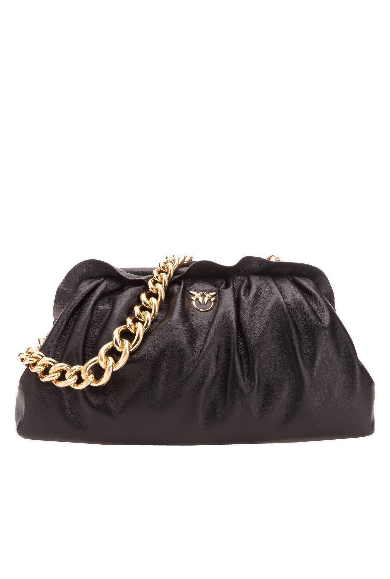 Сумка Maxi Chain Clutch из мягкой кожи наппа, украшенная металлическим фирменным знаком Love Birds Diamond Cut. Внутри сумка обшита подкладкой из микрофибры и дополнена карманом на стенке, закрывающимся на молнию. Металлическая ручка-цепочка с крупными звеньями. Проверьте подлинность своей Love Bag при помощи особого NFC-чипа или кода Certilogo, напечатанного на специальной бирке в форме сердечка.