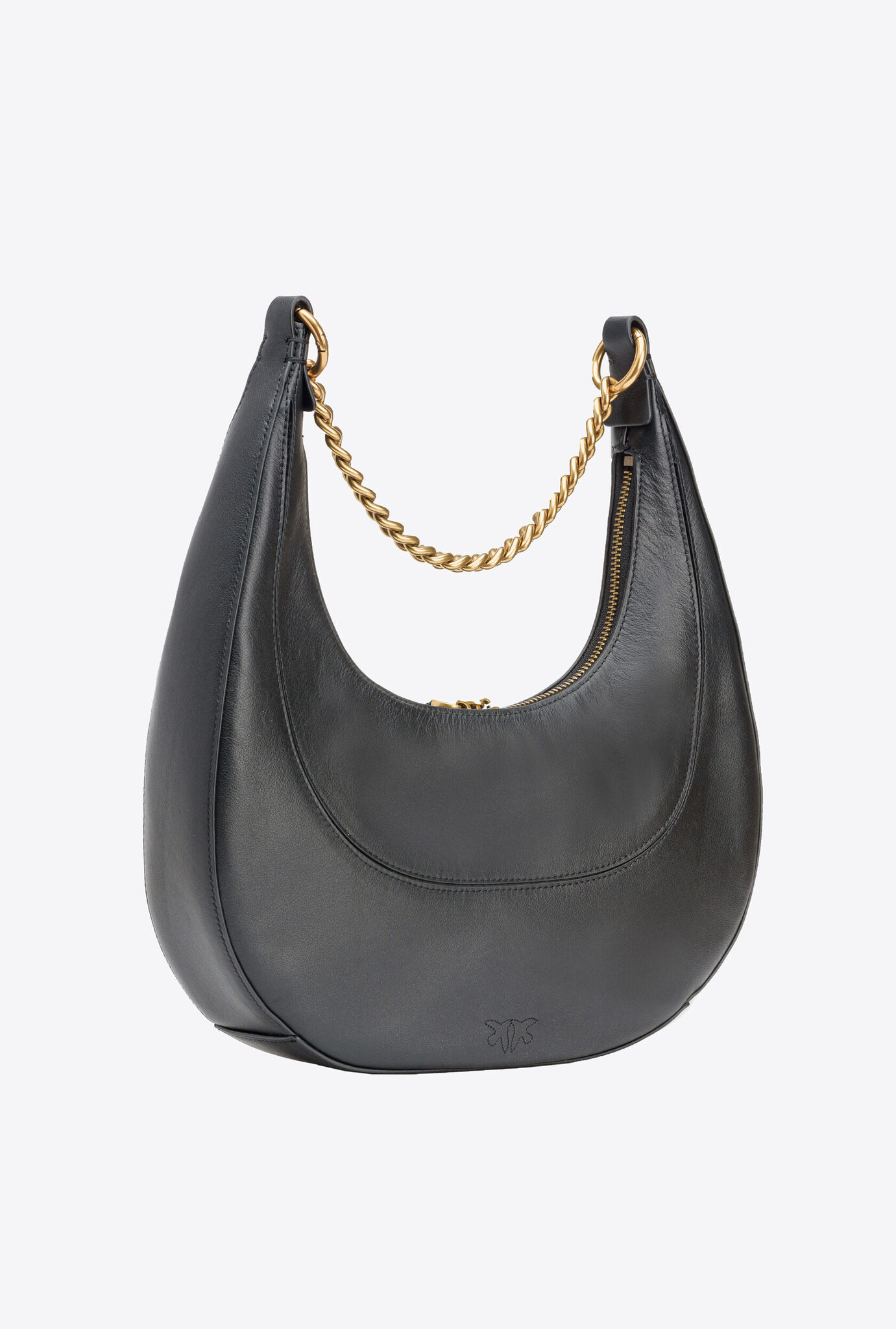 Сумка-бриошь Hobo из мягкой кожи характерной мягкой формы полумесяца. Украшен антикварной позолоченной пластинкой Love Birds Diamond Cut с гальваническим покрытием и верхней ручкой на металлической цепочке. Внутренняя отделка из микрозамши. Застежка-молния. Активируйте свою сумку PINKO: проверьте подлинность вашего продукта и получите персонализированный опыт, отсканировав вышивку Love Birds на задней стороне сумки с помощью смартфона!