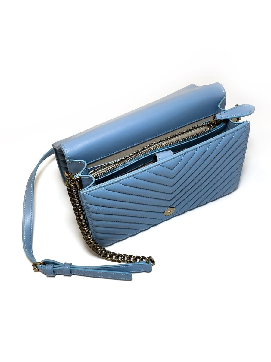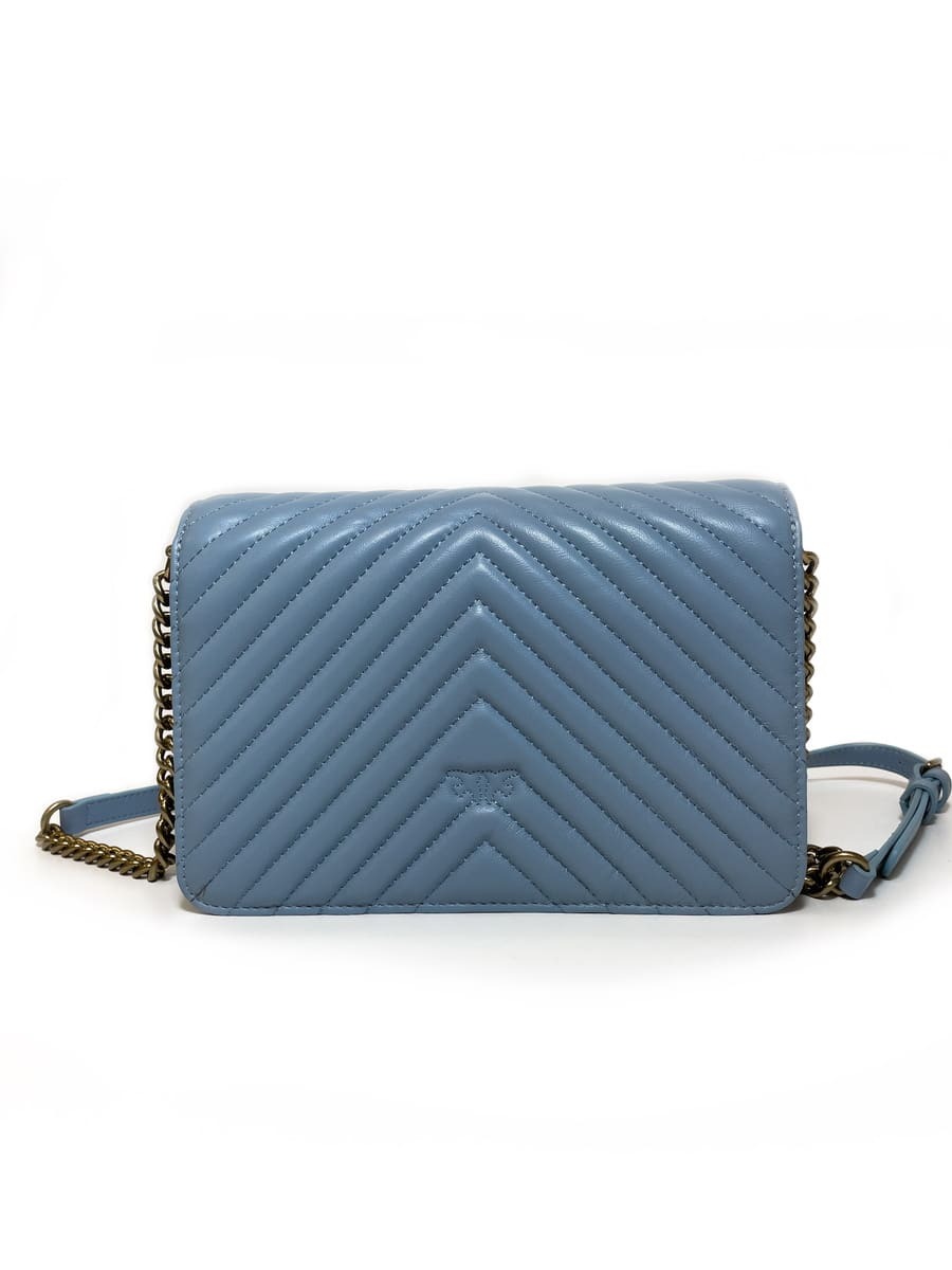 Сумка Classic Love Bag Click из стеганой кожи наппа с шевронным узором. Потайная магнитная застежка дополнена легендарной пряжкой Love Birds Diamond Cut из металла с гравировкой. Внутреннее отделение на подкладке из микрофибры дополнено карманом-перегородкой на молнии и плоским карманом из кожи. Плечевой ремень длиной 110 см представляет собой комбинацию металлической цепочки с квадратными звеньями и практичного регулируемого наплечника из кожи наппа.
