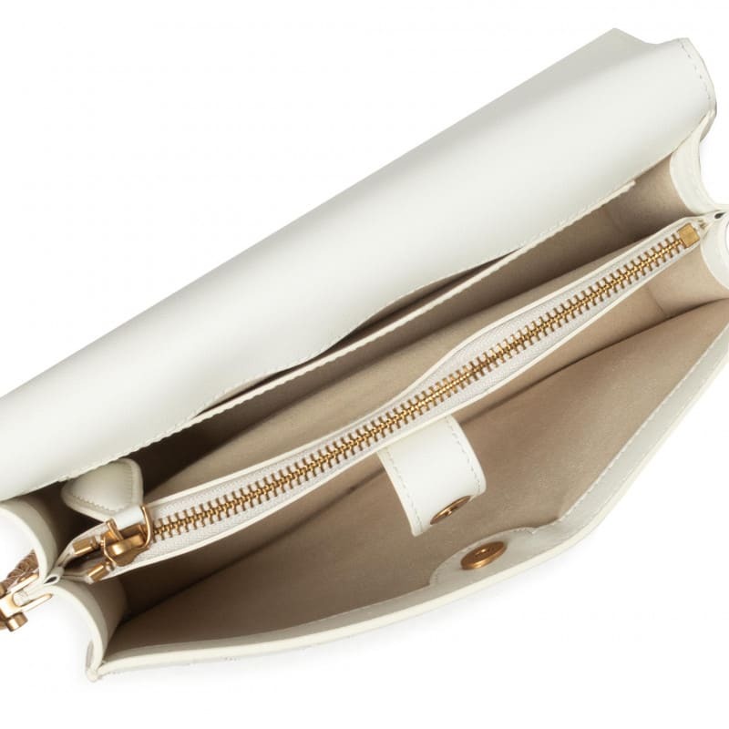 Сумка Love Bag Click из мягкой шелковистой кожи c тисненым узором логотипа. Потайная магнитная застежка украшена легендарной пряжкой Love Birds Diamond Cut из металла с гравировкой. Внутреннее отделение на подкладке из микрофибры дополнено карманом-перегородкой на молнии и плоским карманом из кожи. Плечевой ремень длиной 110 см представляет собой комбинацию металлической цепочки с круглыми звеньями и практичного наплечника из кожи.