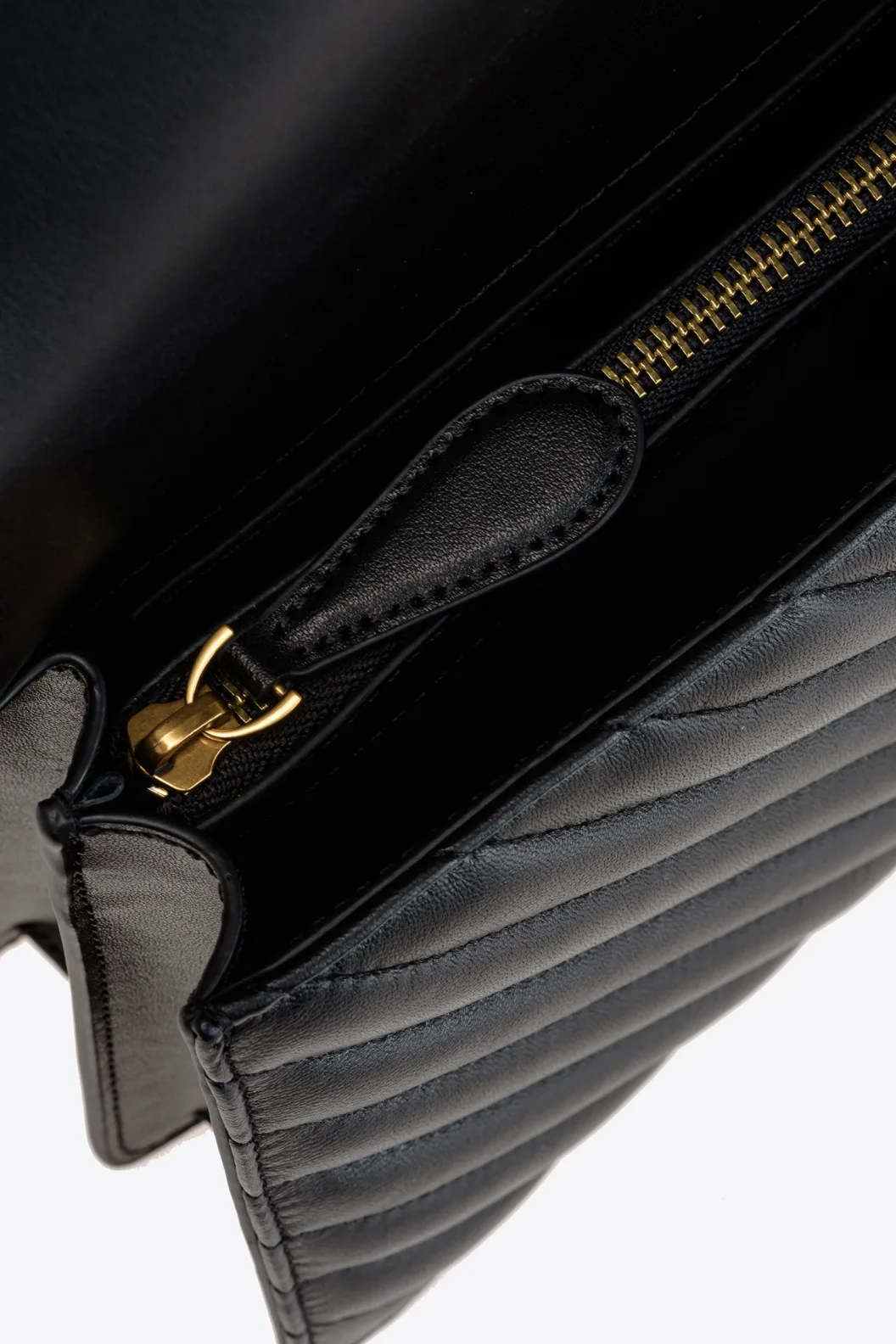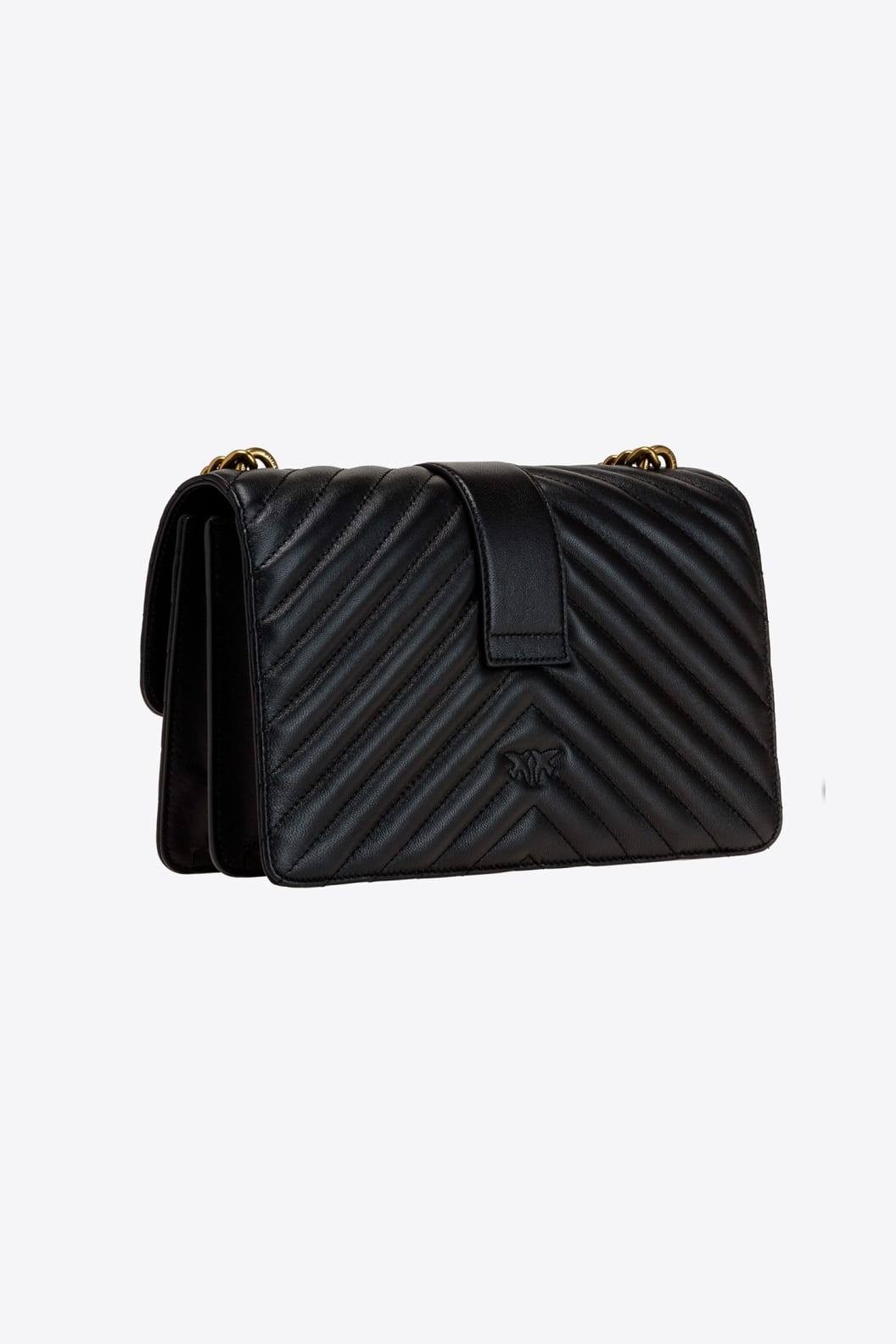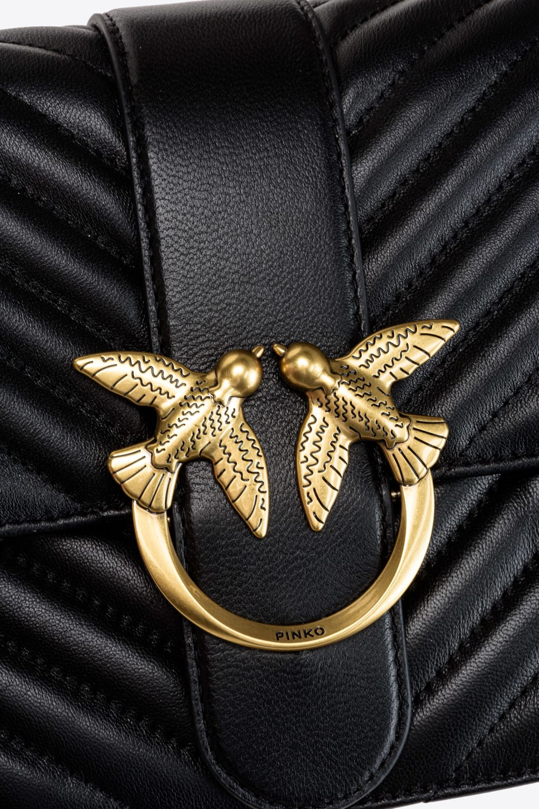 Классическая сумка Love Bag Icon из кожи наппа с отстрочкой и узором в виде шеврона. Застежка украшена легендарной пряжкой Love Birds Diamond Cut. Аксессуар имеет внутреннее отделение на подкладке из микрофибры, центральный разделительный карман на молнии и кожаный накладной карман. Съемный плечевой ремень сочетает в себе классическую цепочку с круглым звеном и практичную кожаную накладку на плечо.#nbsp;