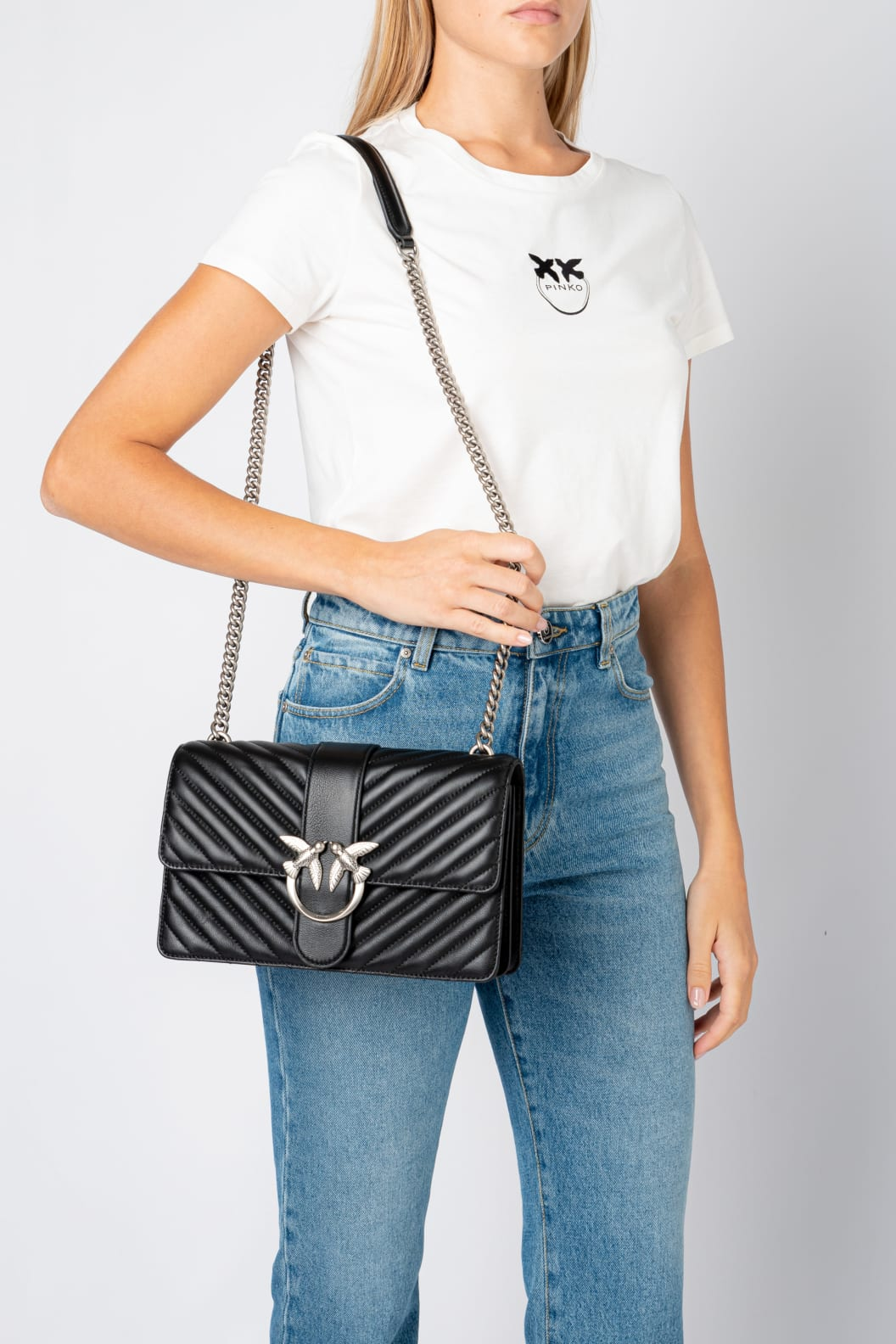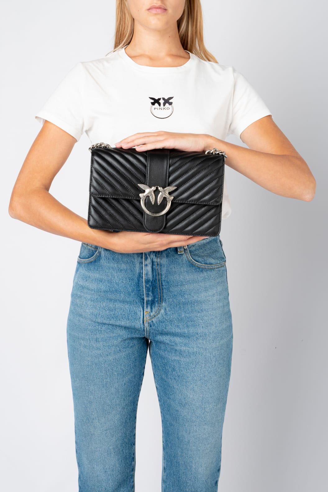 Классическая сумка Love Bag Icon из кожи наппа с отстрочкой и узором в виде шеврона.#nbsp;Застежка украшена легендарной пряжкой Love Birds Diamond Cut.#nbsp;Аксессуар имеет внутреннее отделение на подкладке из микрофибры, центральный разделительный карман на молнии и кожаный накладной карман.#nbsp;Съемный плечевой ремень сочетает в себе классическую цепочку с круглым звеном и практичную кожаную накладку на плечо.#nbsp;