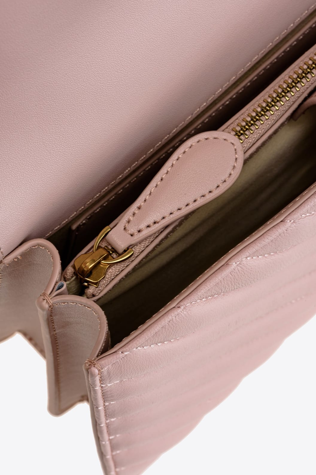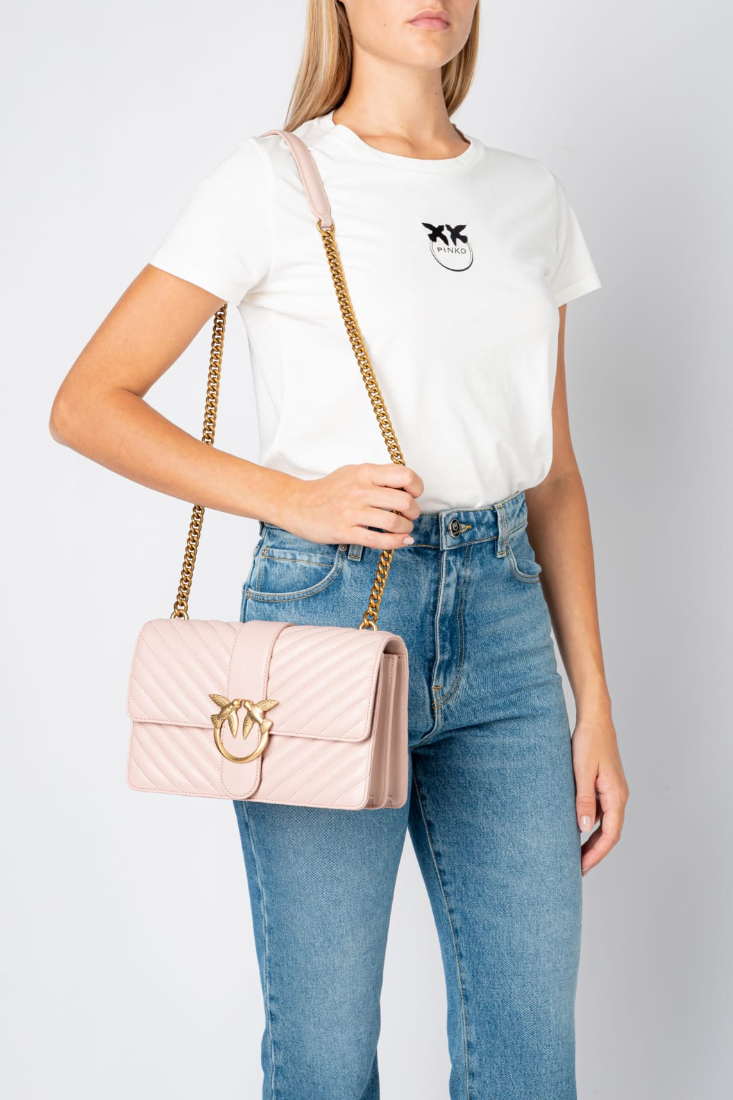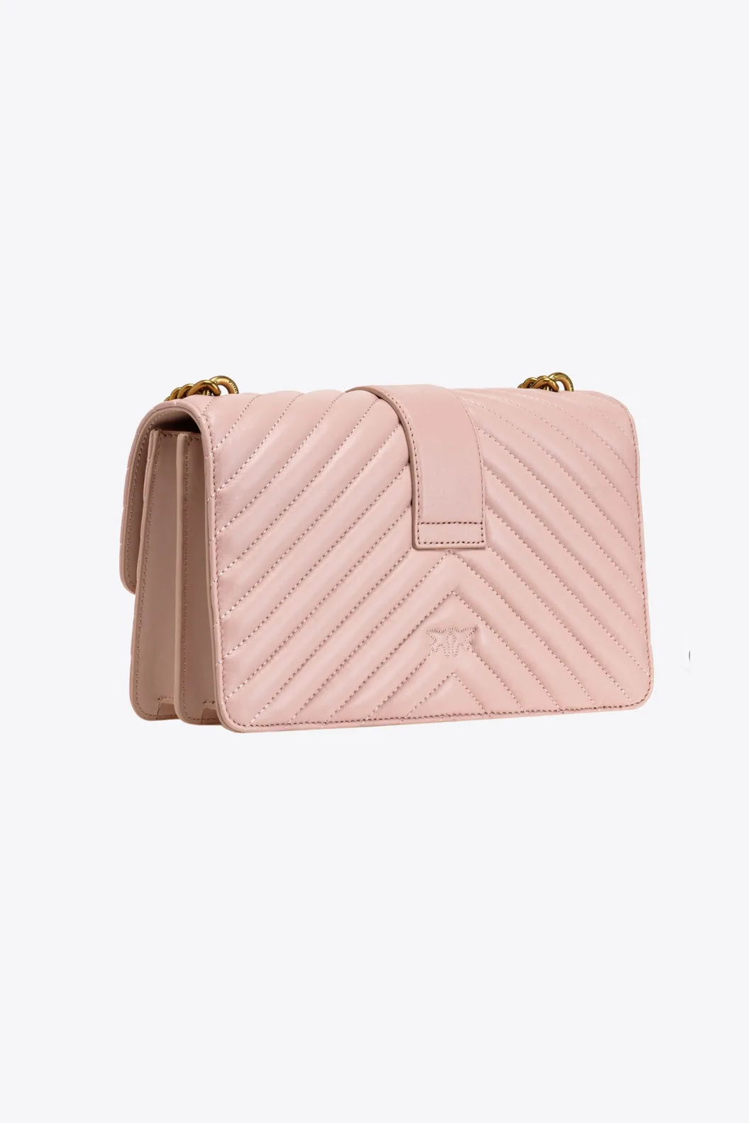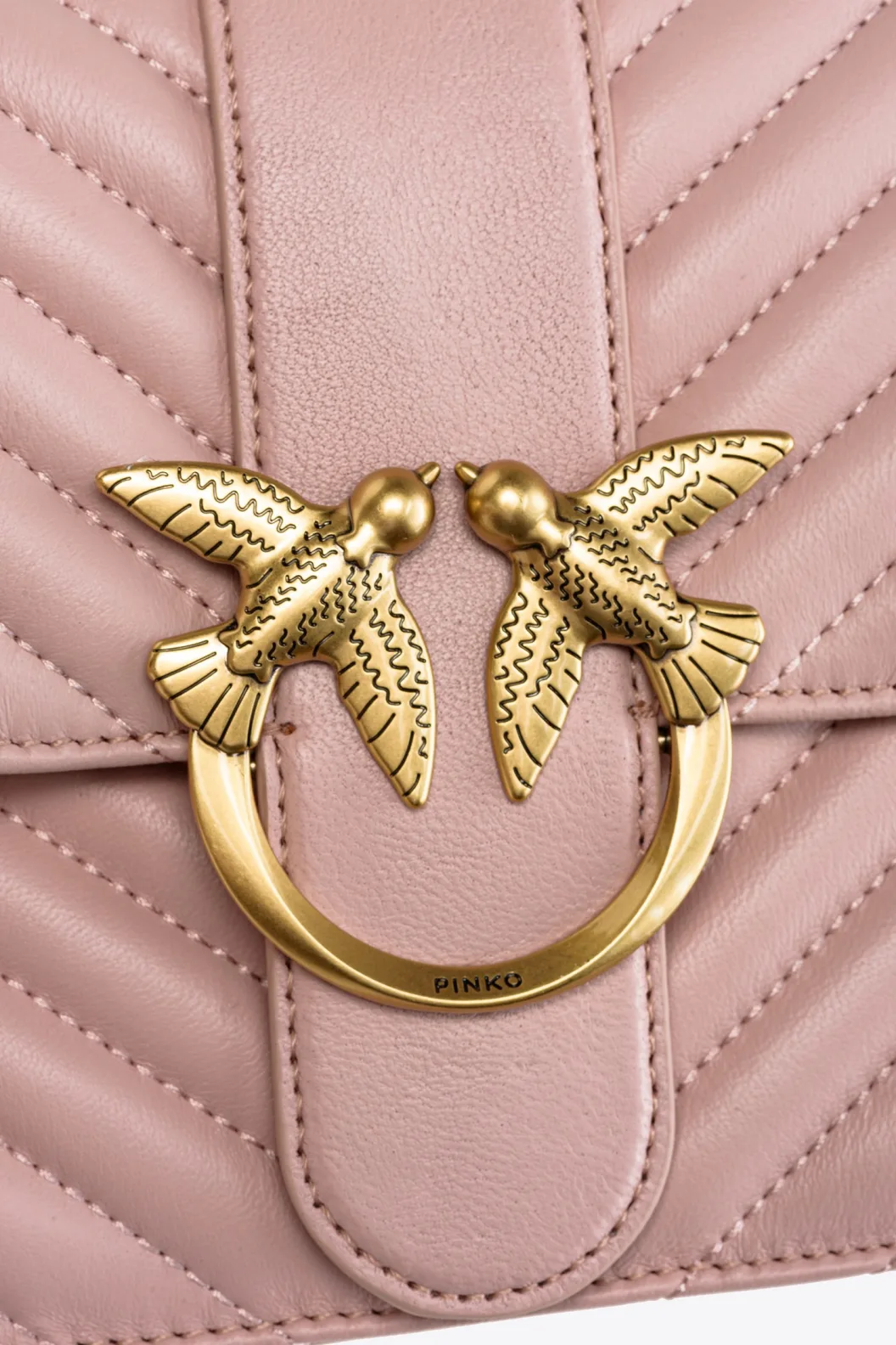 Классическая сумка Love Bag Icon из кожи наппа с отстрочкой и узором в виде шеврона. Застежка украшена легендарной пряжкой Love Birds Diamond Cut. Аксессуар имеет внутреннее отделение на подкладке из микрофибры, центральный разделительный карман на молнии и кожаный накладной карман. Съемный плечевой ремень сочетает в себе классическую цепочку с круглым звеном и практичную кожаную накладку на плечо.