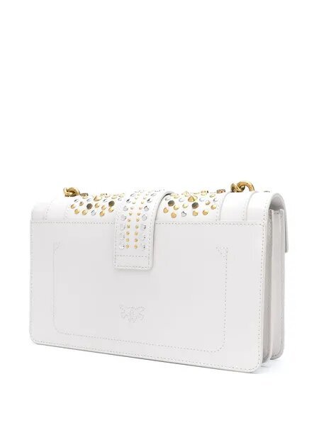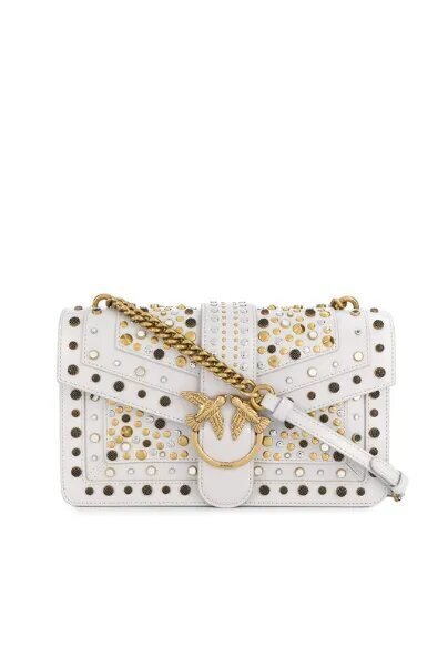 Сумка Love Bag из кожи с винтажным эффектом, украшенная по всей поверхности круглыми заклепками из металла с гальваническим покрытием разных цветов. Застежка с кожаным ремнем-обманкой дополнена легендарной металлической пряжкой с ласточками Love Birds. Внутри сумка обшита микрофиброй и снабжена кожаным карманом на стенке. Плечевой ремень длиной 110 см представляет собой комбинацию классической металлической цепочки и практичного кожаного наплечника. Проверьте подлинность своей Love Bag при помощи особого NFC-чипа или кода Certilogo, напечатанного на специальной бирке в форме сердечка.