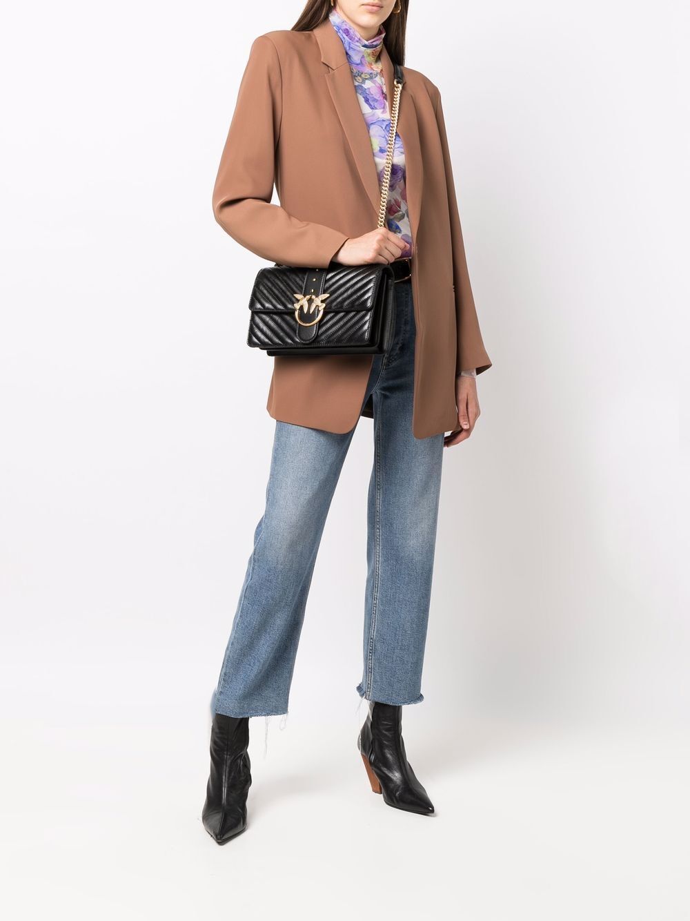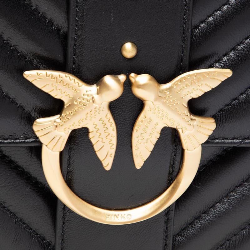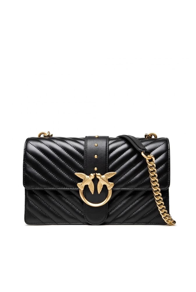 Сумка Classic Love Bag из кожи наппа с простежкой шеврон. Застежка с кожаным ремнем-обманкой дополнена легендарной металлической пряжкой Love Birds с гальваническим покрытием "античное золото". Внутри сумка обшита подкладкой из микрофибры, разделена карманом-перегородкой на молнии с подвеской с фирменным декором-заклепкой в виде ласточки и снабжена кожаным карманом на стенке. Плечевой ремень длиной 110 см представляет собой комбинацию классической металлической цепочки с круглыми звеньями и практичного наплечника из кожи наппа.
