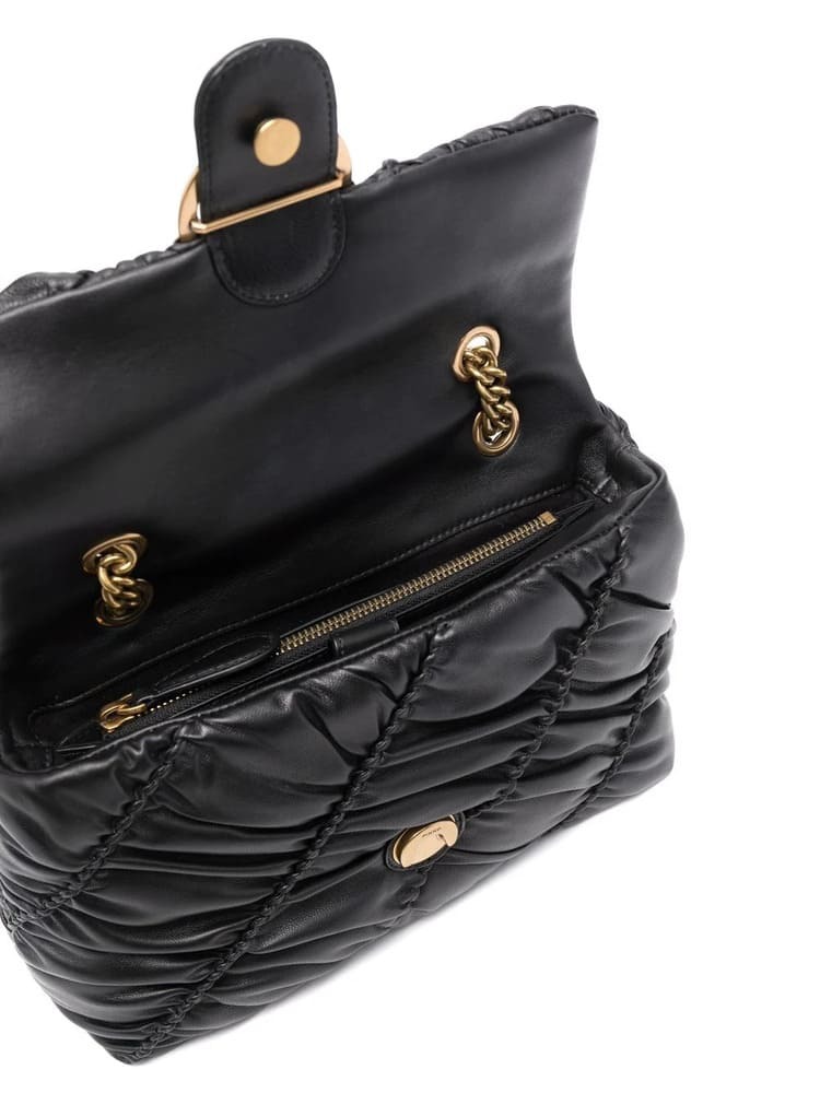 Сумка Classic Love Bag Puff из кожи наппа отличается оригинальным узором с эффектом сборки. Застежка украшена легендарной пряжкой Love Birds Diamond Cut из металла. Внутреннее отделение на подкладке из микрофибры дополнено карманом-перегородкой на молнии и плоским карманом. Плечевой ремень представляет собой комбинацию классической металлической цепочки и практичного наплечника из кожи наппа.