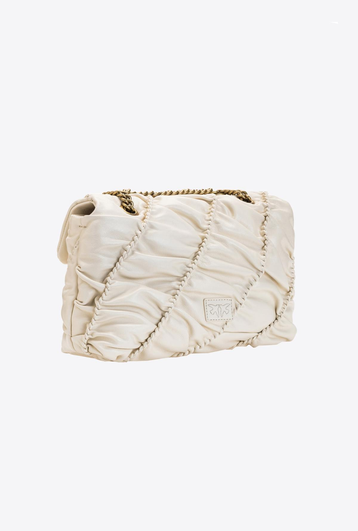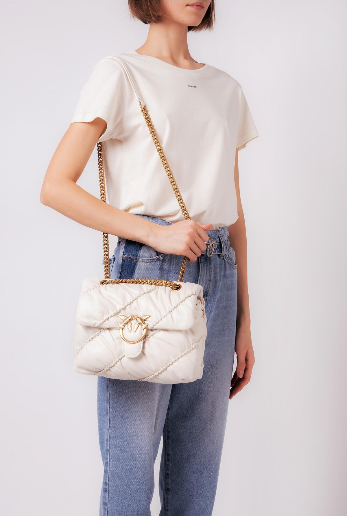 Сумка Classic Love Bag Puff из кожи наппа отличается оригинальным узором с эффектом сборки. Застежка украшена легендарной пряжкой Love Birds Diamond Cut из металла. Внутреннее отделение на подкладке из микрофибры дополнено карманом-перегородкой на молнии и плоским карманом. Плечевой ремень представляет собой комбинацию классической металлической цепочки и практичного наплечника из кожи наппа.