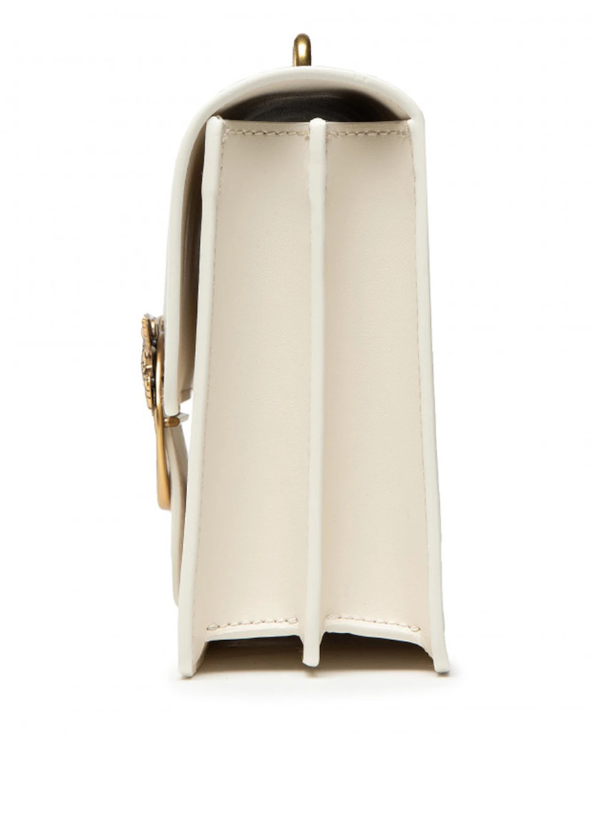 Сумка Classic Love Bag из мягкой шелковистой кожи. Застежка с кожаным ремешком и заклепками украшена легендарной пряжкой Love Birds Diamond Cut из металла. Внутреннее отделение на подкладке из микрофибры дополнено карманом-перегородкой на молнии и плоским карманом из кожи. Съемный плечевой ремень длиной 110 см представляет собой комбинацию классической цепочки с круглыми звеньями и практичного регулируемого наплечника из кожи.