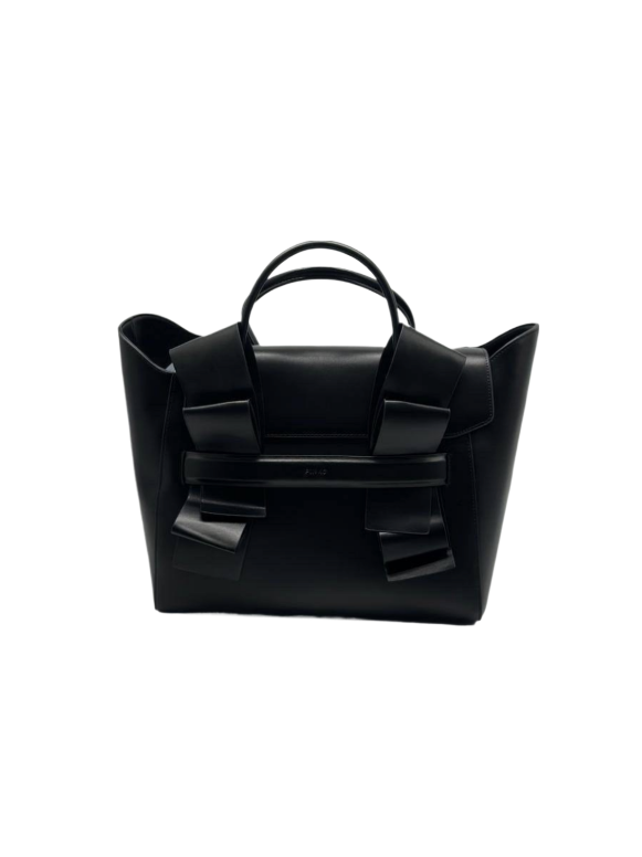 Модель изготовлена из мягкой гладкой кожи, дополнена вставками в тон, создающими эффект ленты в стиле традиционного японского пояса оби. Ручку спереди украшает тисненый миниатюрный логотип PINKO