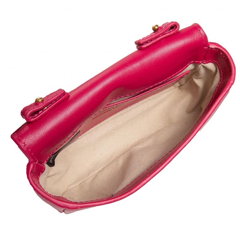 Золотистый металлический логотип, застежка с клапаном спереди, застежка на кнопки и внутренние накладные карманы. Наружный Материал: Кожа Теленка 100%