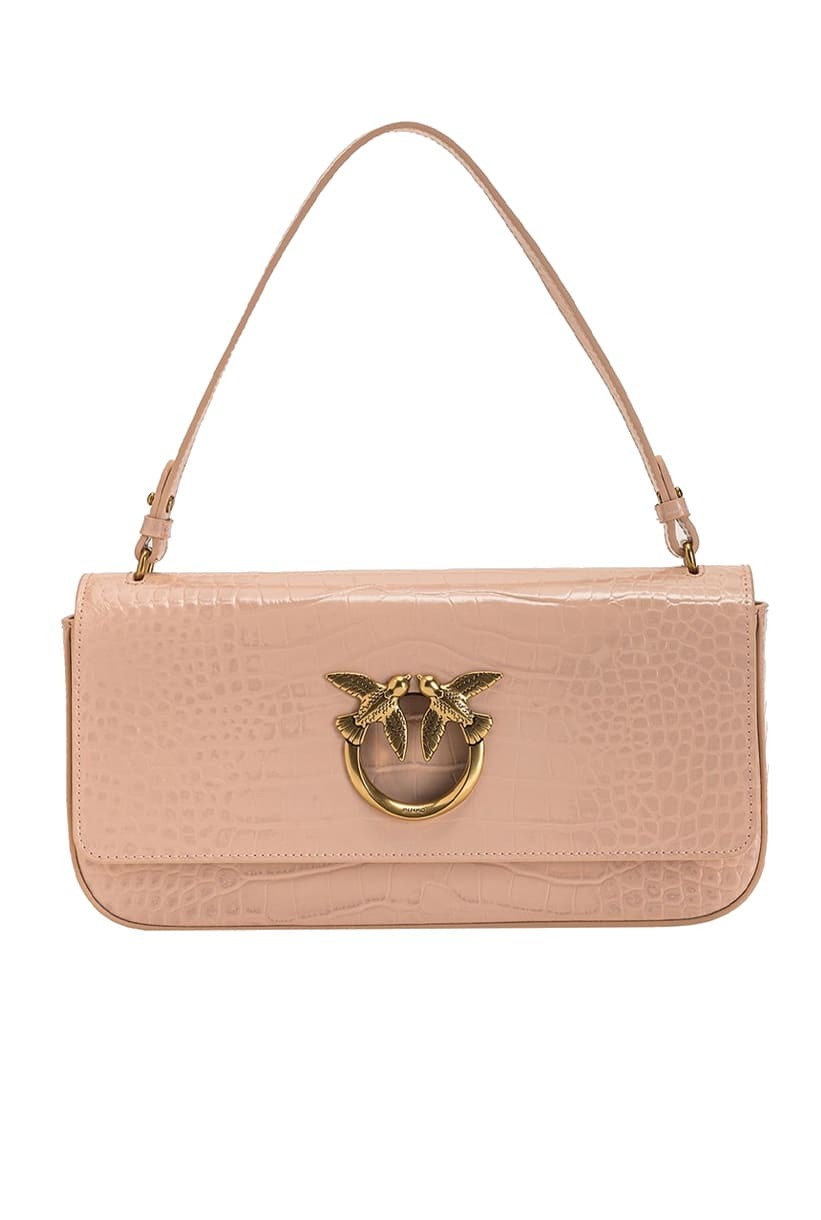Сумка Love Bag Click Baguette удлиненного силуэта выполнена из кожи с тиснением под крокодила и особым эффектом блеска. Потайная магнитная застежка дополнена легендарной пряжкой Love Birds Diamond Cut из металла с декоративным вырезом. Внутреннее отделение на подкладке из микрофибры. Тонкий ремень-цепочка позволяет носить аксессуар на плече.