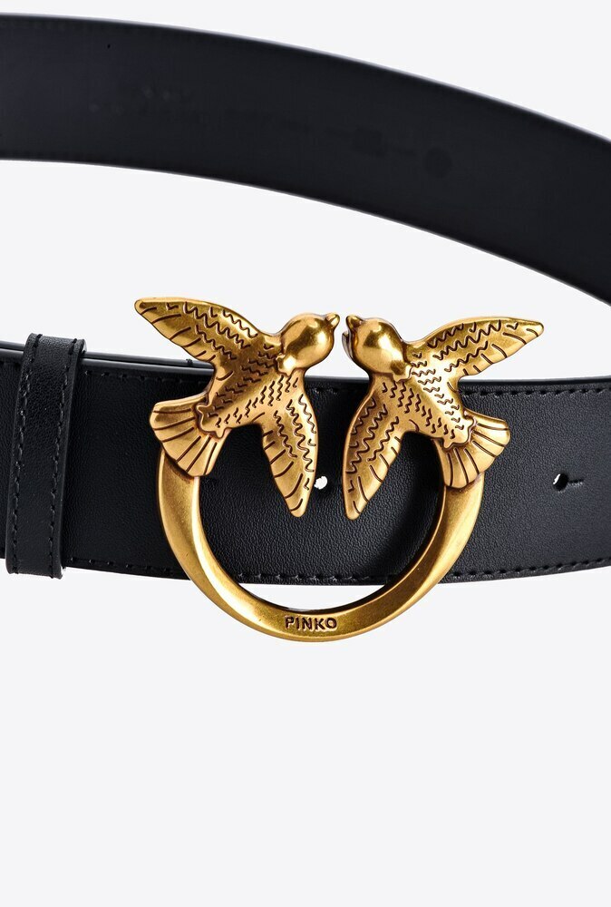 LOVE BIRDS LEATHER BELT - black–copper - S (90 см)