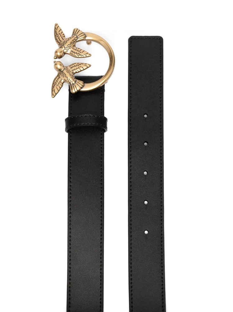 LOVE BIRDS LEATHER BELT - black–gold - S (90 см)