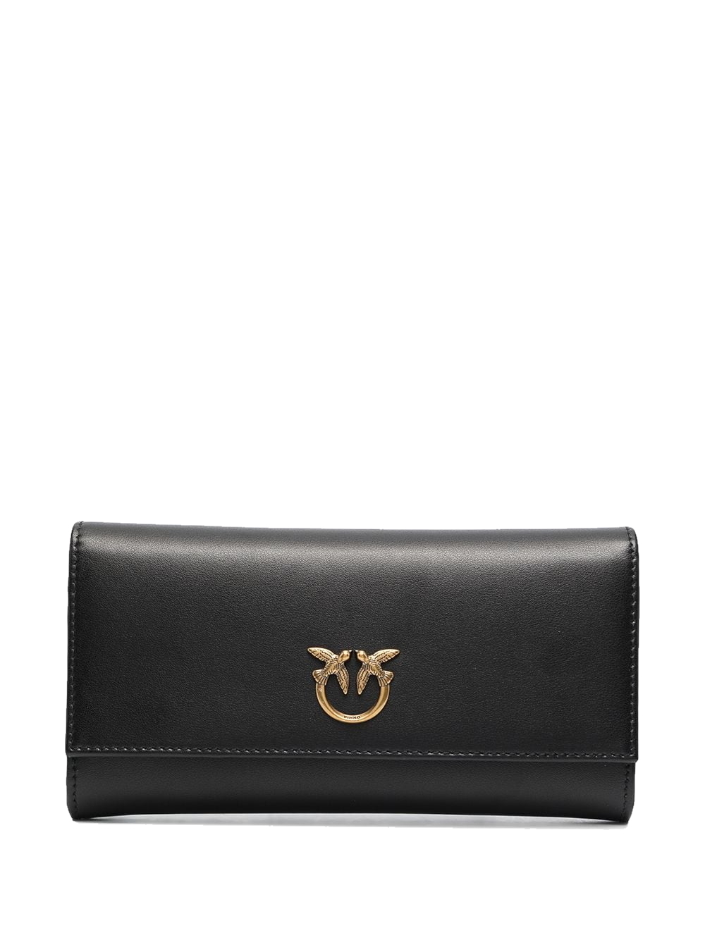 Кожаная подкладка, золотистый металлический логотип, откидной верх с застежкой на защелку, внутренние отделения для карт, отделение для монет, отделение для купюр и застежка на молнии сзади.