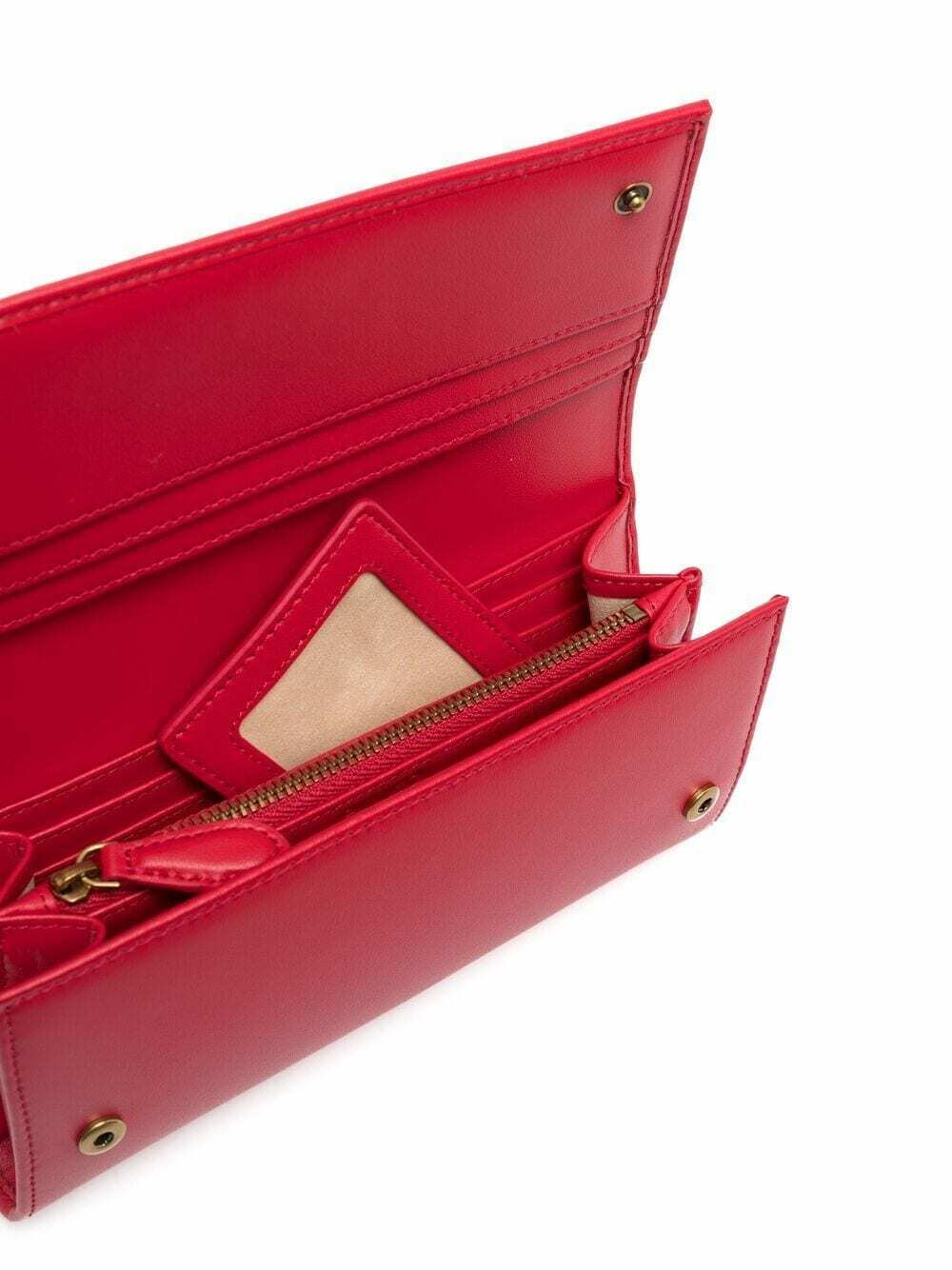 Кожаная подкладка, золотистый металлический логотип, откидной верх с застежкой на защелку, внутренние отделения для карт, отделение для монет, отделение для купюр и застежка на молнии сзади.