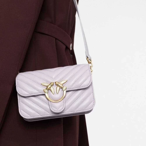 Cумка сделана из мягкой шелковистой кожи со стеганым шевронным узором отличается своим закругленным силуэтом. Застежка дополнена легендарной пряжкой Love Birds Diamond Cut из металла. Внутреннее отделение на подкладке из микрофибры включает карман-перегородку на молнии и плоский карман из кожи. Плечевой ремень представляет собой комбинацию классической металлической цепочки с круглыми звеньями и практичного наплечника из кожи. Проверь подлинность своей Love Bag при помощи особого NFC-чипа.