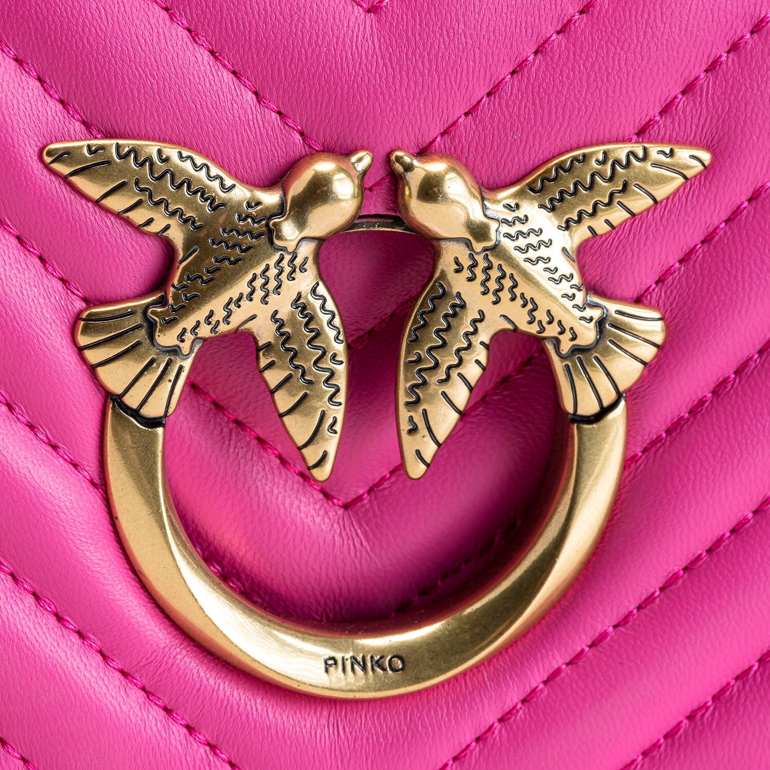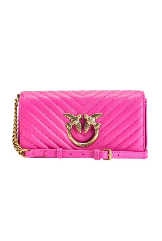 Сумка Pinko Mini Love Bag Click Baguette из мягкой кожи со стеганным шевронным узором. Удлиненная форма сумки дополняется ремешком в виде цепочки и кожаного наплечника. Застежку украшает пряжка с легендарными ласточками Love Birds. Розовая сумка Пинко станет ярким акцентом в вашем стиле.