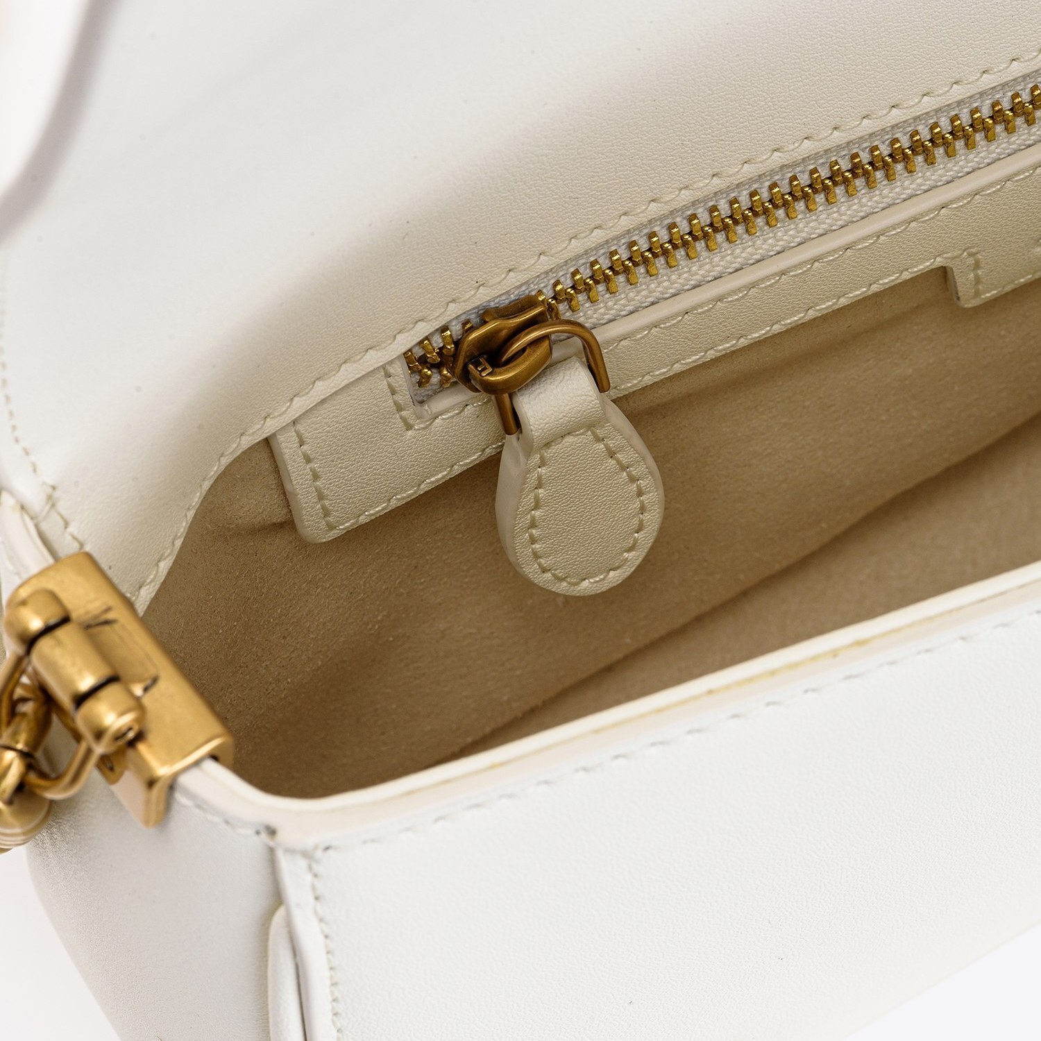 Сумка Pinko Mini Love Bag Click Baguette удлиненного силуэта из мягкой бархатистой кожи белого цвета. Пряжка золотистого оттенка с влюбленными ласточками Love Birds украшает застежку. Ремешок состоит из цепочки и удобного кожаного наплечника.Сумка Пинко украсит как дневной, так и вечерний образ.