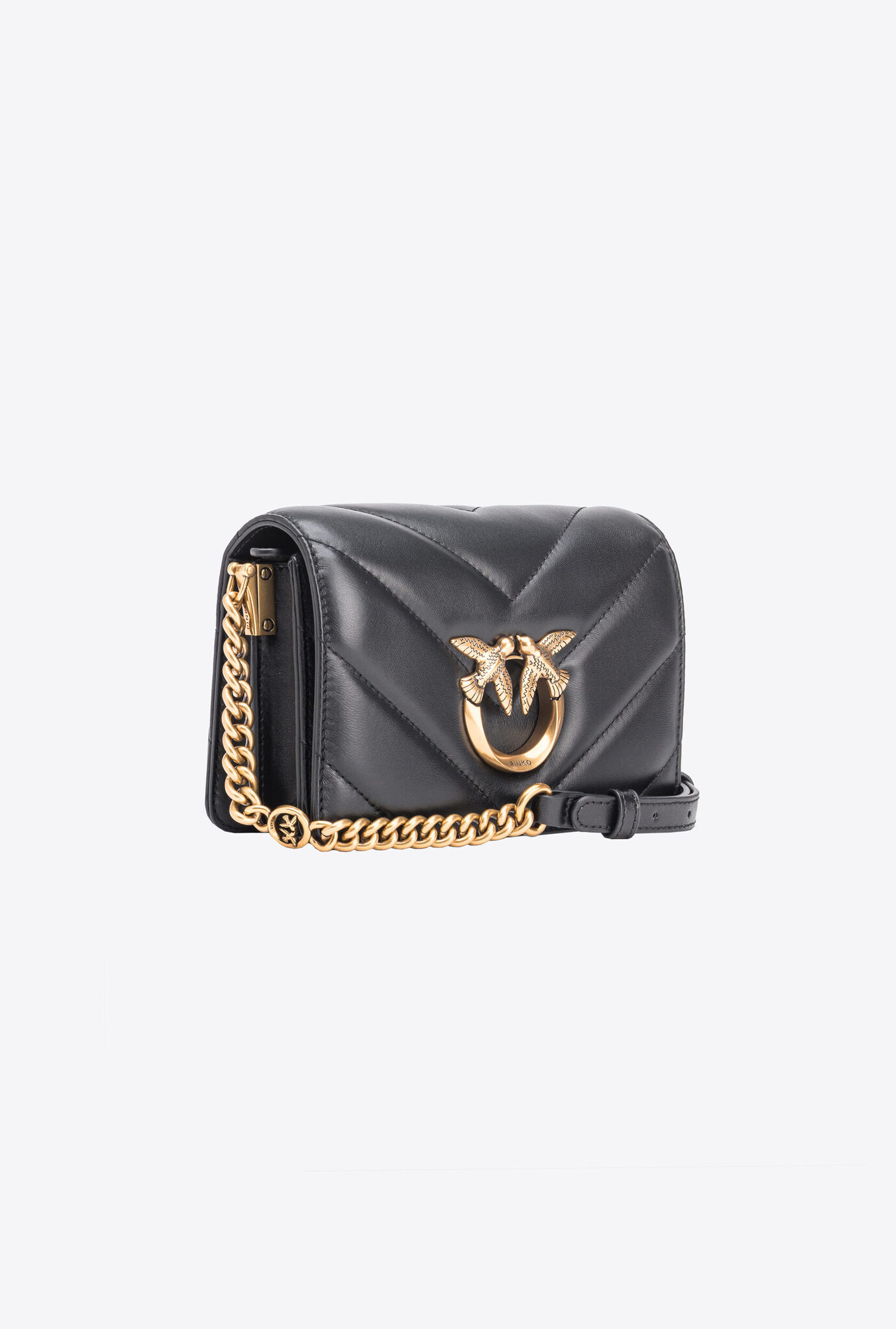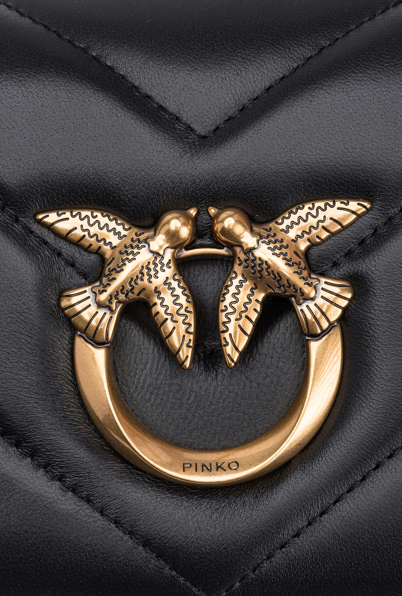 Сумка Mini Love Bag Click из стеганой кожи наппа с крупным шевронным узором. Потайная застежка на кнопки украшена культовой металлической пряжкой Love Birds Diamond Cut с гальваническим покрытием под старинное золото и эффектом выреза. Аксессуар имеет внутреннюю подкладку из микрозамши, центральный разделительный карман на молнии и кожаный накладной карман. Плечевой ремень сочетает в себе классическую цепочку с круглыми звеньями и практичную регулируемую кожаную подкладку. Активируйте свою сумку PINKO: проверьте подлинность вашего продукта и получите персонализированный опыт, отсканировав вышивку Love Birds на задней стороне сумки с помощью смартфона!