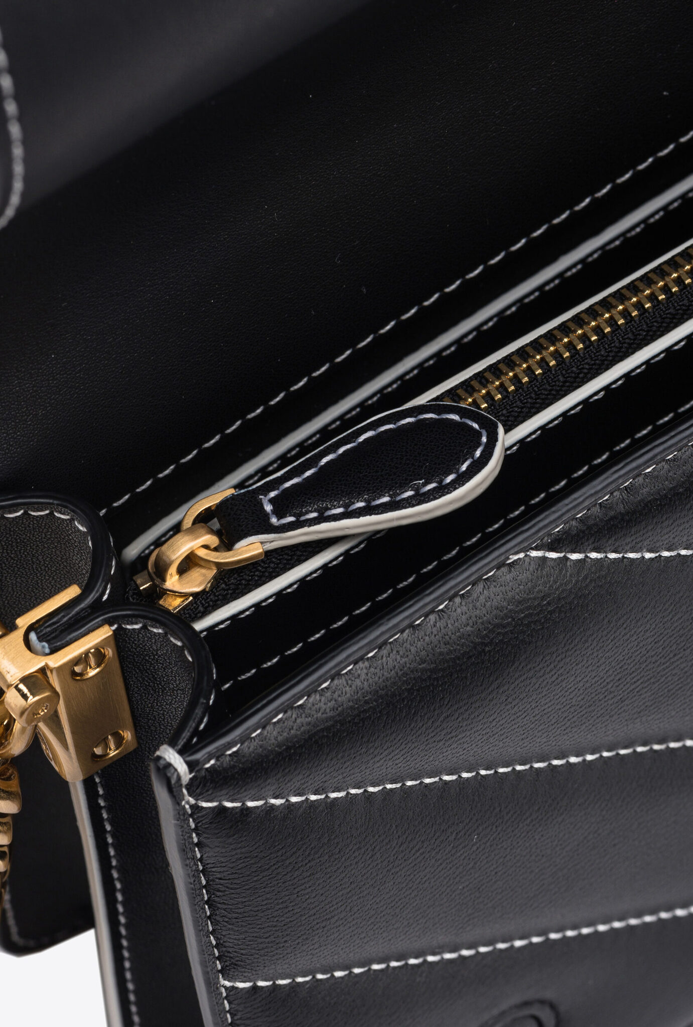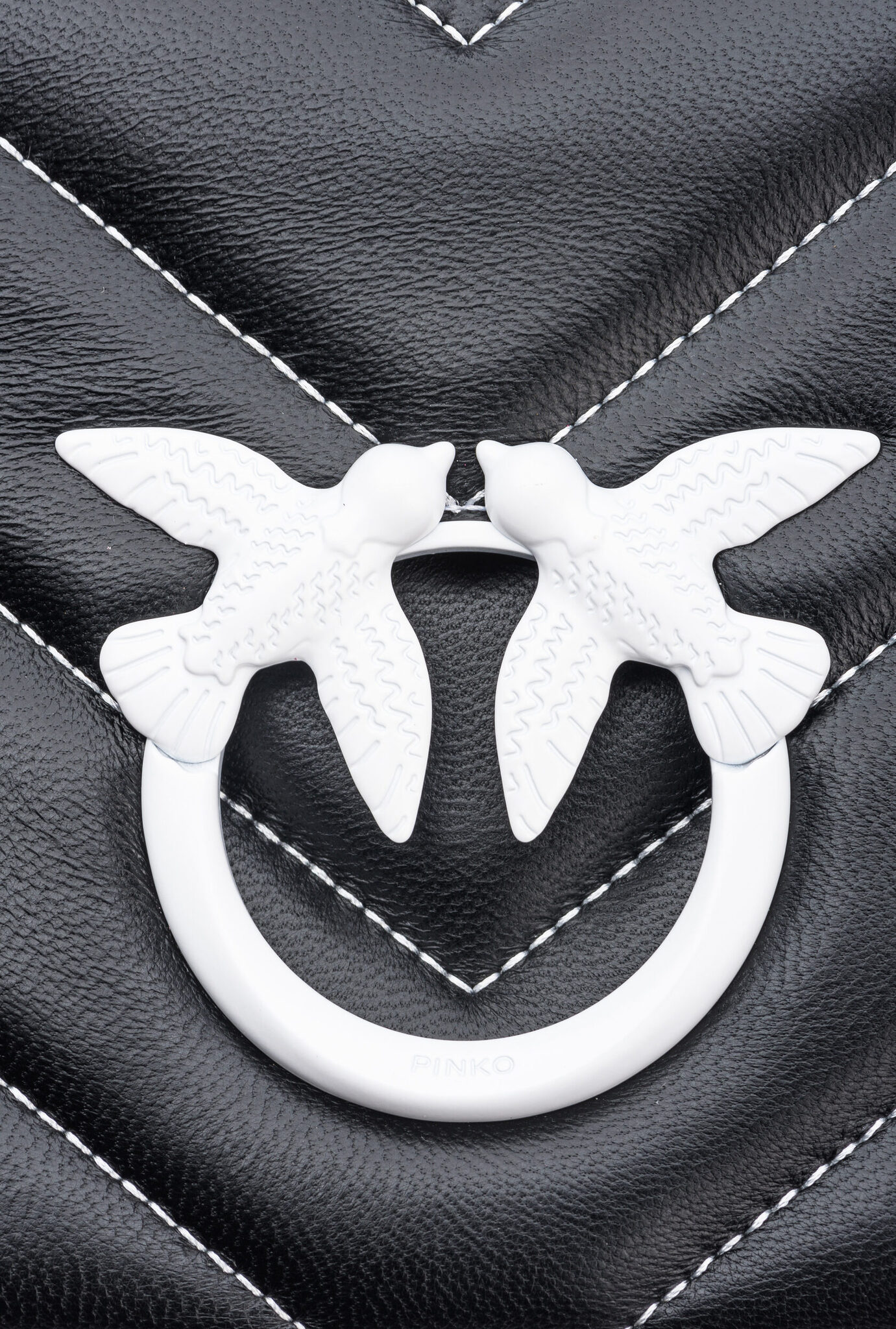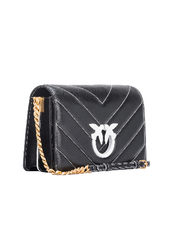 Сумка Mini Love Bag Click из кожи наппа отличается крупным стеганым шевронным узором. Застежку на потайную кнопку украшает легендарная металлическая пряжка Love Birds Diamond Cut с декоративным вырезом. Строчки и пряжка окрашены в контрастный или противоположный сумке оттенок. Внутреннее отделение на подкладке из замшевой микрофибры дополнено карманом-перегородкой на молнии и плоским карманом из кожи. Плечевой ремень представляет собой комбинацию классической цепочки с круглыми звеньями и практичного регулируемого наплечника из кожи. Сумка представлена в специальной капсульной коллекции Limited Edition, выпущенной ограниченным тиражом эксклюзивно для PINKO Galleria. Благодаря специальному NFC-чипу ты сможешь испытать новую уникальную функцию, посвященную приобретенной тобой сумке!