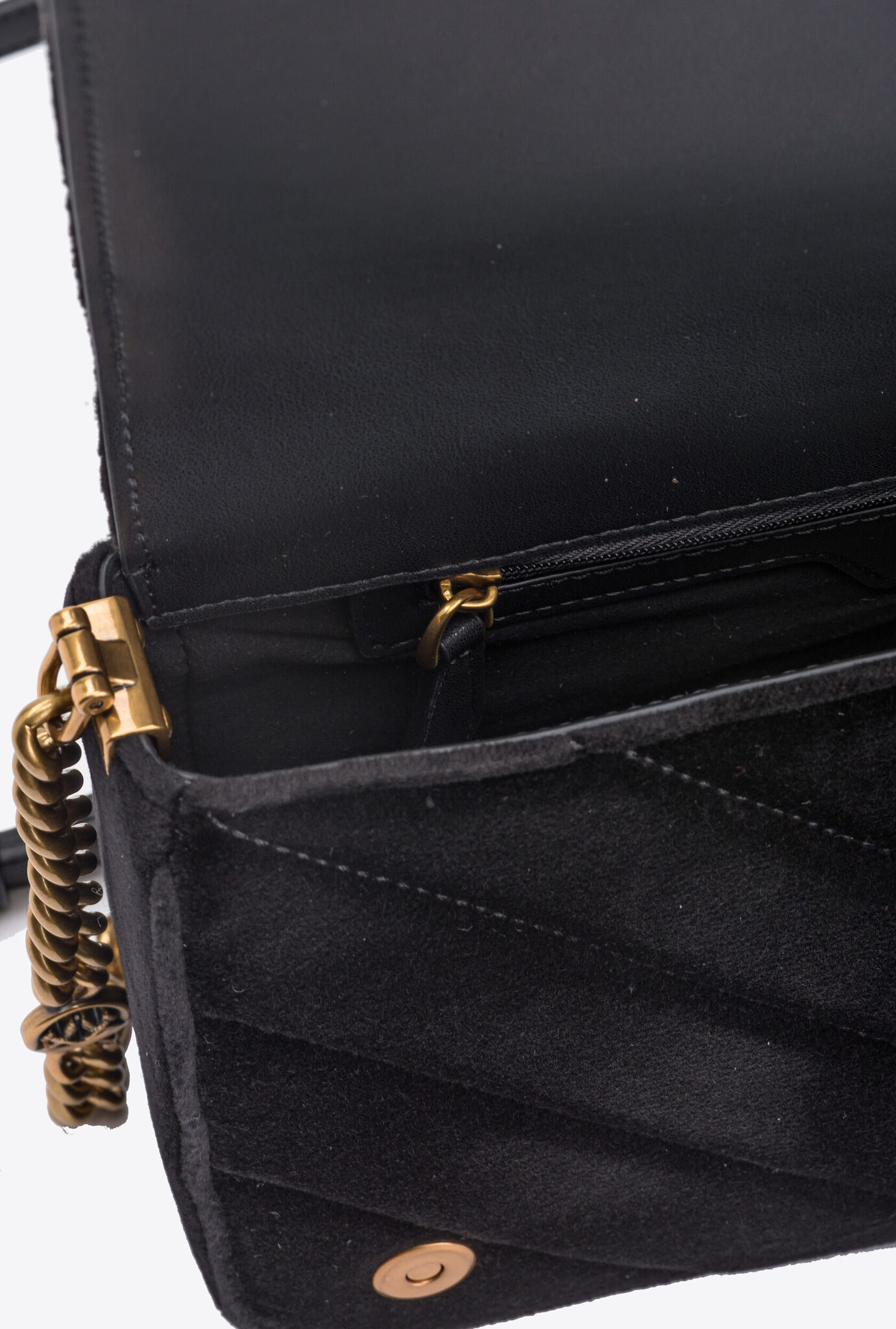 Сумка Mini Love Bag Click из бархата отличается стеганым шевронным узором с отделкой миниатюрными заклепками. Застежку на потайную кнопку украшает легендарная пряжка Love Birds Diamond Cut с декоративным вырезом, выполненная из металла с гальваническим покрытием цвета античного золота. Внутреннее отделение на подкладке из микрофибры с плоским карманом из кожи. Плечевой ремень представляет собой комбинацию классической металлической цепочки с круглыми звеньями и практичного регулируемого наплечника из кожи. Активируй свою сумку PINKO: поднеси смартфон к вышитому на задней стенке логотипу Love Birds, чтобы проверить подлинность изделия и получить доступ к персонализированным функциям!