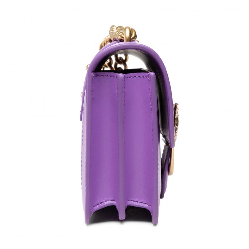 Мини-сумка Love Bag Icon из мягкой шелковистой кожи. Застежка с кожаным ремешком и миниатюрными металлическими заклепками украшена легендарной пряжкой Love Birds Diamond Cut. Внутреннее отделение на подкладке из микрофибры дополнено карманом-перегородкой на молнии и плоским карманом. Плечевой ремень представляет собой комбинацию классической цепочки с круглыми звеньями и практичного регулируемого наплечника из кожи.#nbsp;