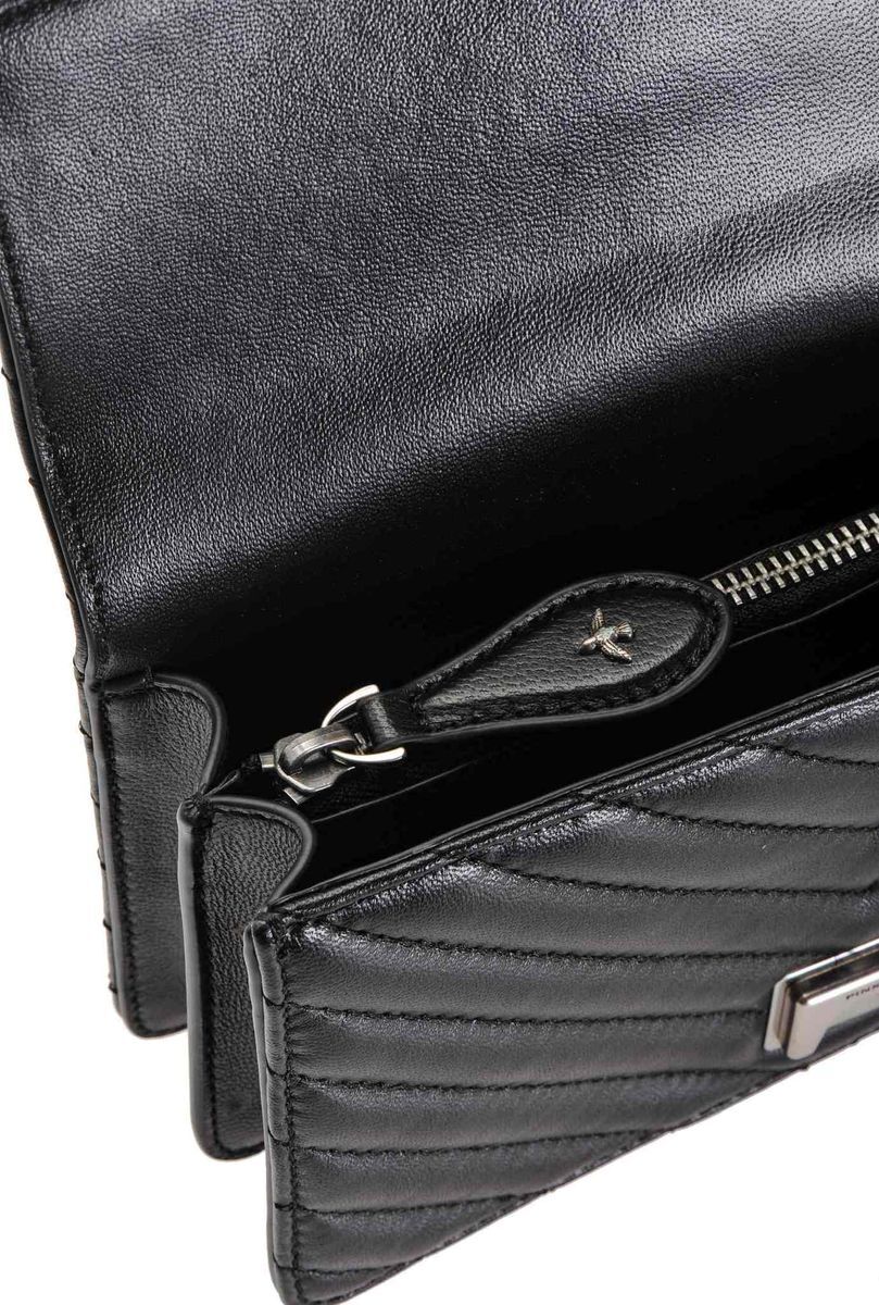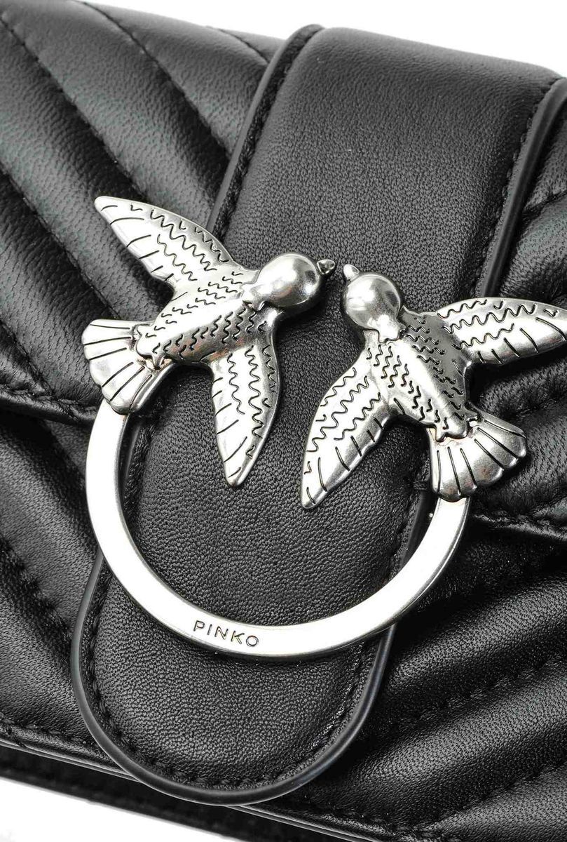 Сумка Mini Love Bag из кожи наппа с диагональной простежкой шеврон. Застежка с ремнем-обманкой из кожи наппа дополнена легендарной металлической пряжкой с ласточками Love Birds. Внутри сумка обшита подкладкой из микрофибры и снабжена карманом-средником на молнии с пуллером, украшенным фирменным декором-заклепкой в виде ласточки, и кожаным карманом на стенке. Плечевой ремень длиной 110 см представляет собой комбинацию классической металлической цепочки с практичным наплечником. Проверь подлинность своей Love Bag при помощи особого NFC-чипа Certilogo