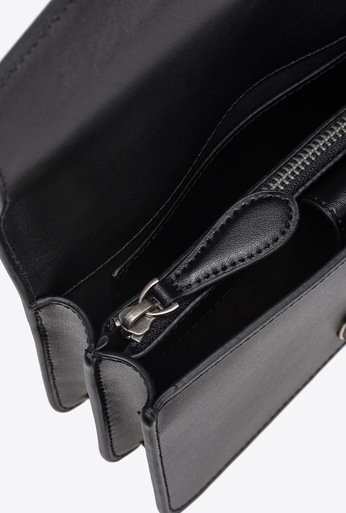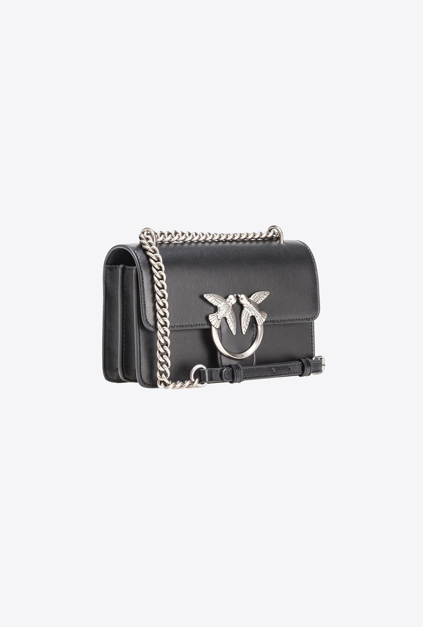 Сумка Mini Love Bag One выполнена из мягкой шелковистой кожи. Застежку украшает легендарная металлическая пряжка Love Birds Diamond Cut. Внутреннее отделение на подкладке из замшевой микрофибры дополнено карманом-перегородкой на молнии и плоским карманом из кожи. Плечевой ремень представляет собой комбинацию классической цепочки с круглыми звеньями и практичного регулируемого наплечника из кожи.