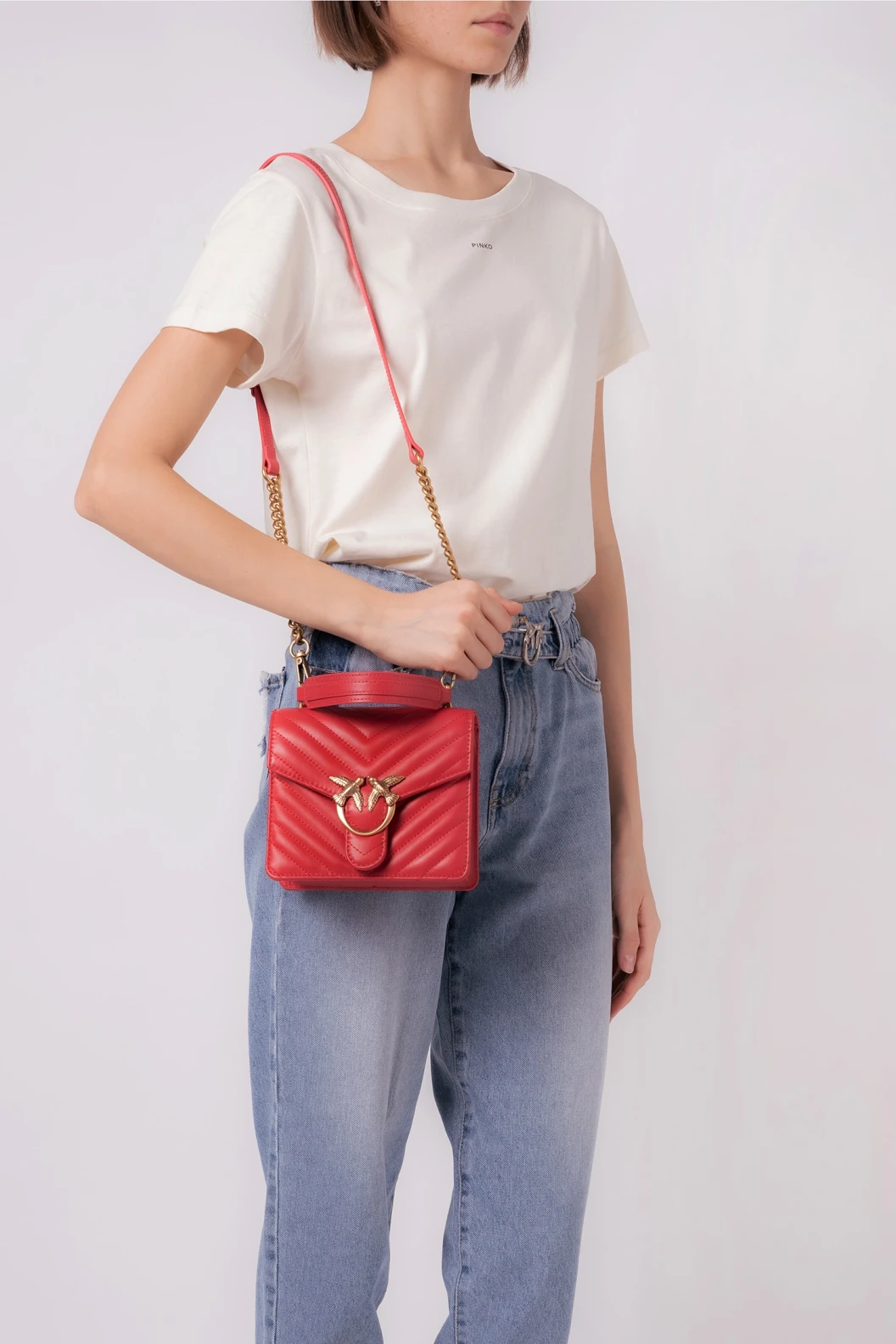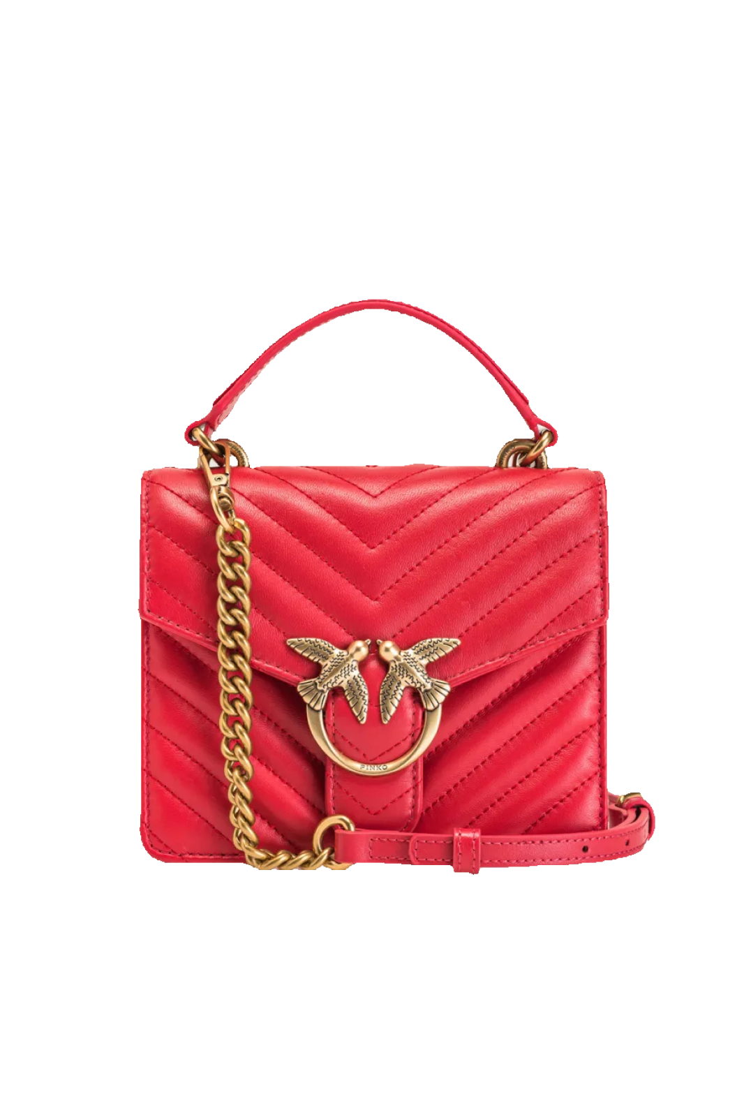 MINI LOVE BAG TOP HANDLE CHEVRON – red-antique gold
