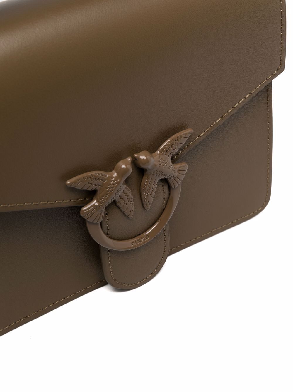 Мини-сумка Mini Love Top Handle из мягкой шелковистой кожи. Застежка с клапаном дополнена легендарной пряжкой Love Birds Diamond Cut из металла с эмалевым покрытием в тон. Внутреннее отделение на подкладке из микрофибры. Кожаная ручка сверху, объемный плечевой ремень-цепочка с крупными звеньями и логотипом и съемный плечевой кожаный ремень, который отстегивается с помощью маленьких карабинов.