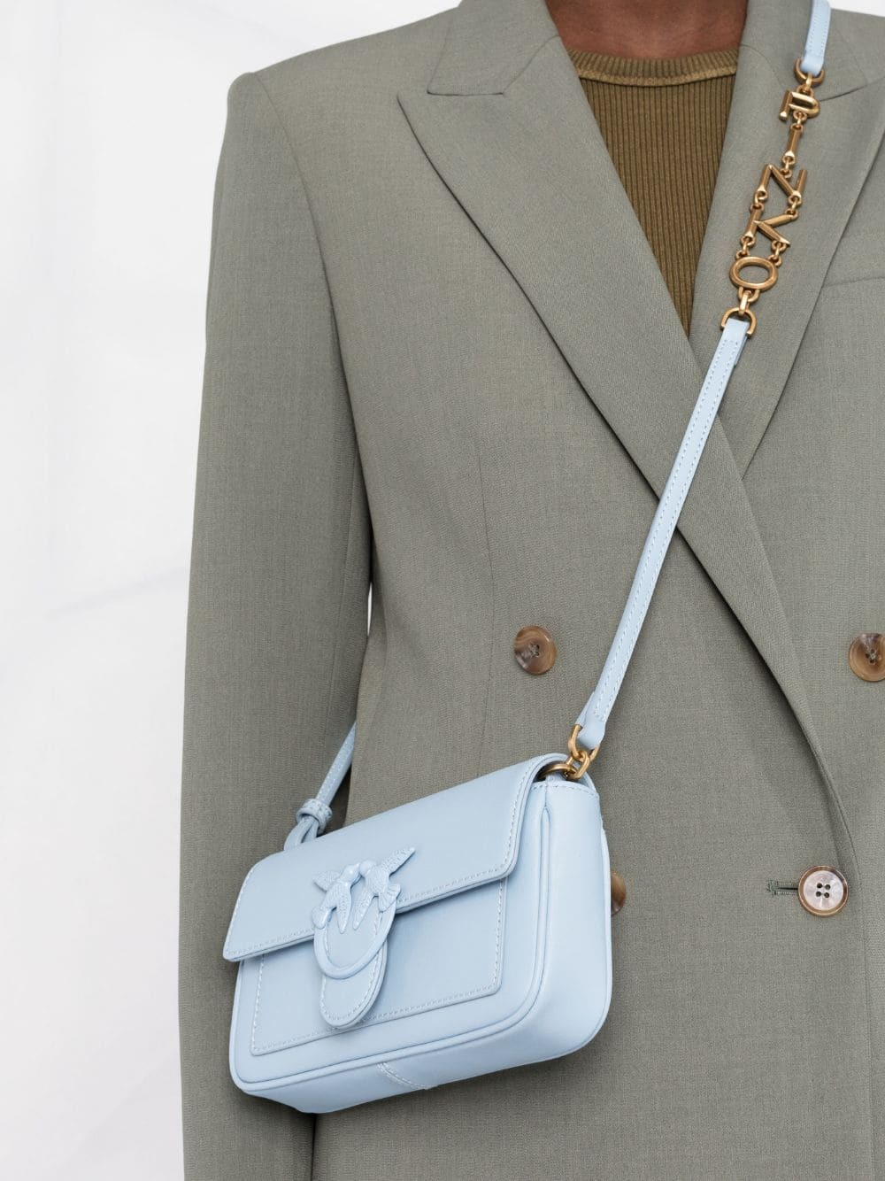 Сумка Pocket Love Bag из мягкой шелковистой кожи с металлической пряжкой Love Birds Diamond Cut с эмалевым покрытием в тон. Внутреннее отделение на подкладке из микрофибры. Съемный плечевой ремень представляет собой комбинацию практичного наплечника из кожи и металлической цепочки с квадратными звеньями и надписью PINKO.