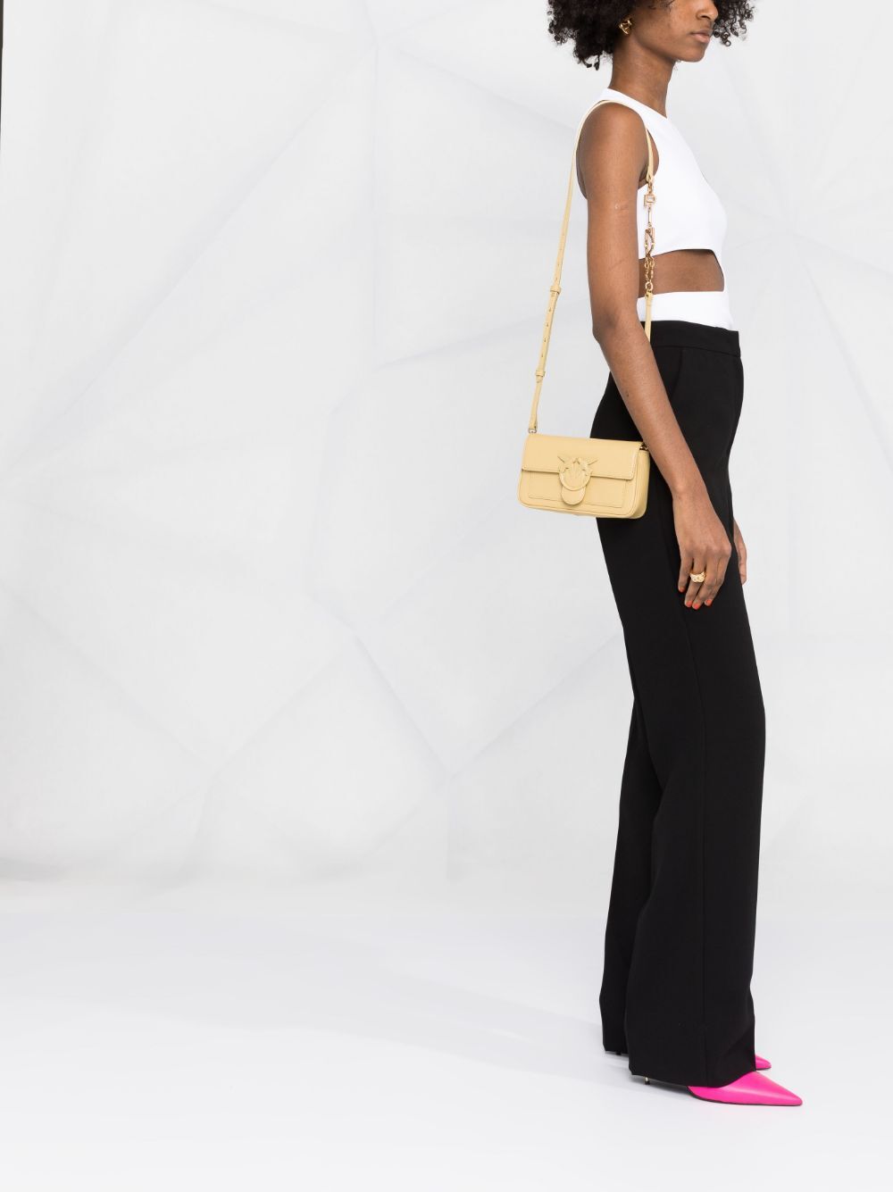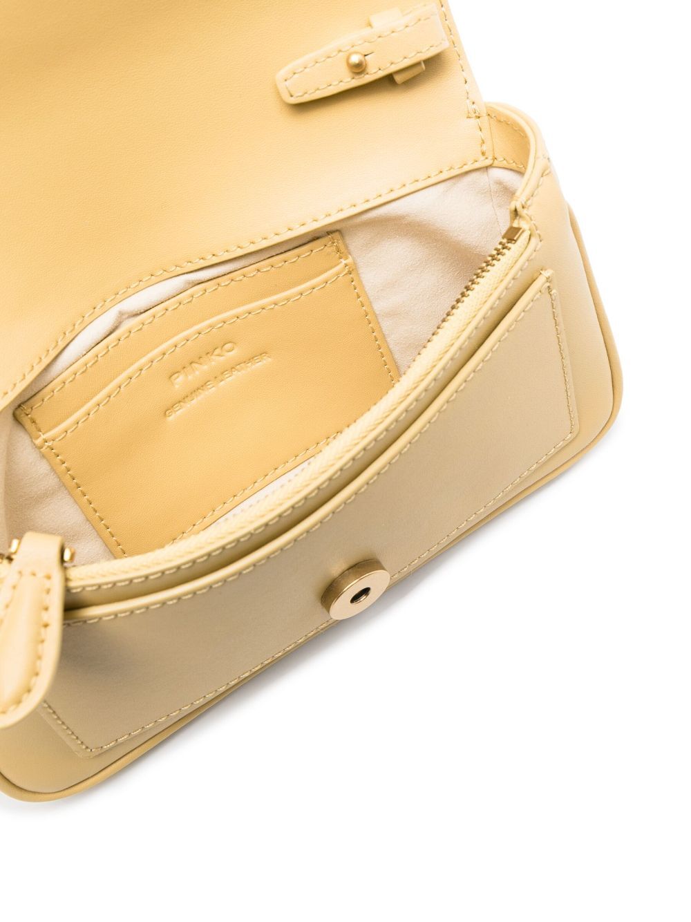 Сумка Pocket Love Bag из мягкой шелковистой кожи с металлической пряжкой Love Birds Diamond Cut с эмалевым покрытием в тон. Внутреннее отделение на подкладке из микрофибры. Съемный плечевой ремень представляет собой комбинацию практичного наплечника из кожи и металлической цепочки с квадратными звеньями и надписью PINKO.